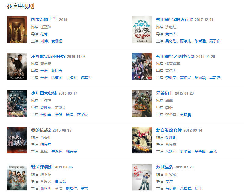 代表作品:蜀山戰(zhàn)紀之劍俠傳奇、新白發(fā)魔女傳、血脈、新萍蹤俠影